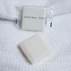 La pastilla lleva el estampado “Natural Soap” y se presenta en un envoltorio plisado de polipropileno, cerrado con una etiqueta central personalizada con el diseño de tu logo, que aporta identidad y prolijidad al producto.