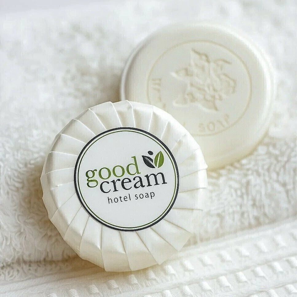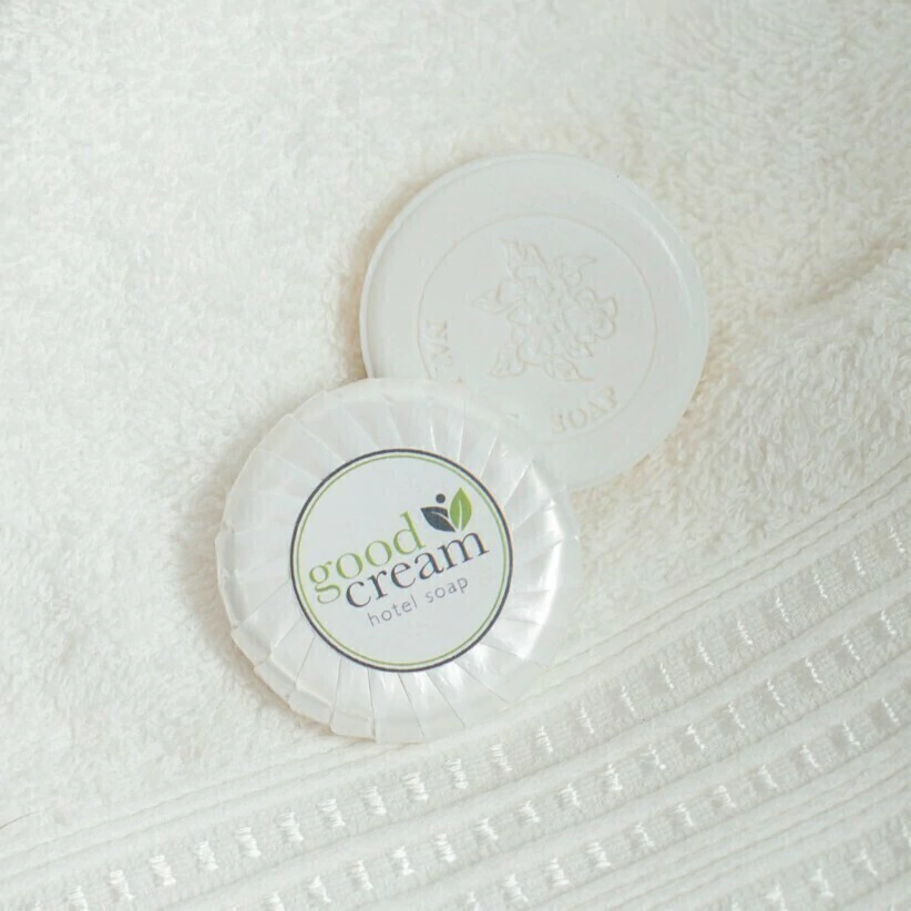 Clásico y elegante, este jabón hotelero redondo de 20 gramos es ideal para alojamientos que buscan una presentación tradicional con un toque distintivo.