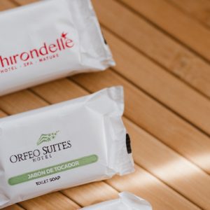 En su envoltorio flow ponemos el logo en el frente y datos de tu hotel o empresa en el dorso.